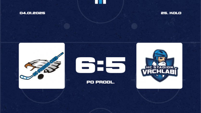 První zápas Nového roku odehrál HC Stadion na ledě Chebu. Po první bezbrankové třetině v té druhé padlo hned šest gólů. Bohužel pro hostující tým jich více padlo do vrchlabské sítě. Zápas nakonec dospěl do prodloužení, kde byl úspěšnější Cheb a doma mu tak zůstaly dva body.