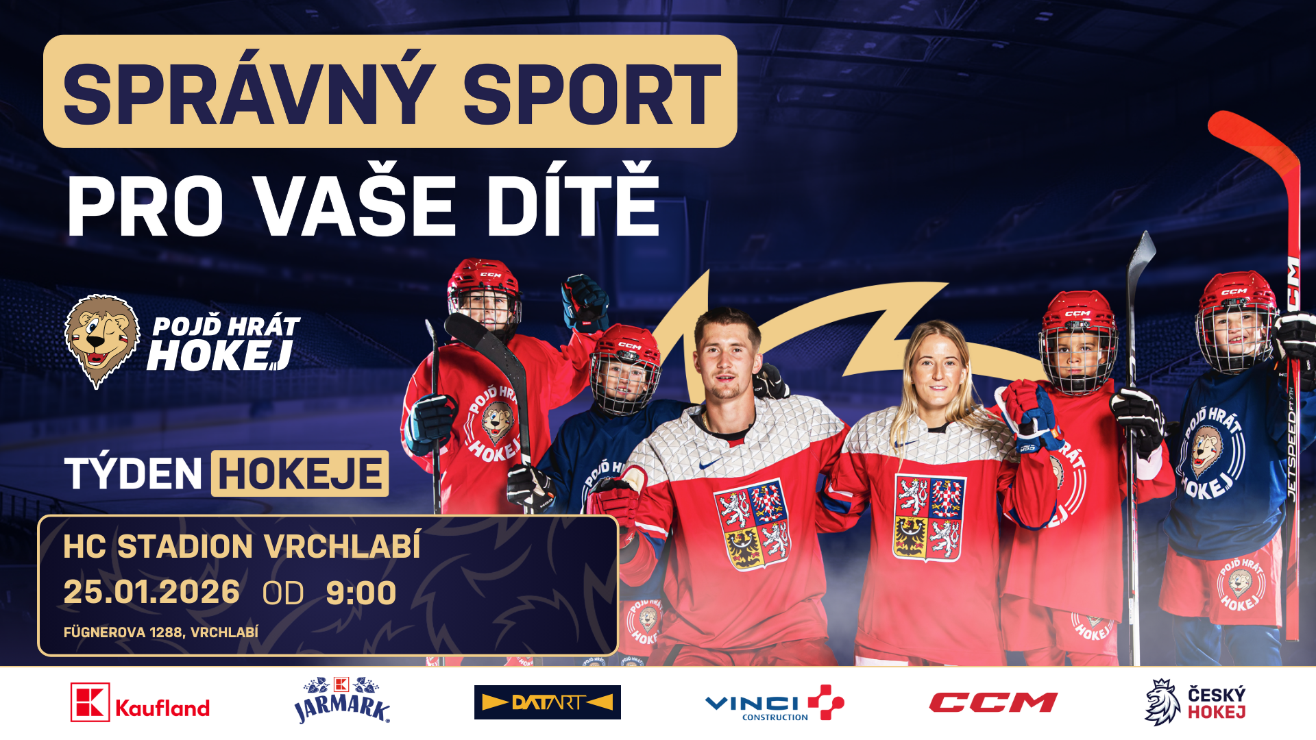 HC Stadion Vrchlabí pořádá ve spolupráci s Českým hokejem na vrchlabském zimním stadionu v rámci Týdne hokeje náborovou akci. Kromě zážitku v podobě prvních krůčků na ledě si každé dítě navíc s sebou domů odnese zajímavý hokejový dárek. Přijďte si vyzkoušet lední hokej a zažijte spoustu zábavy!