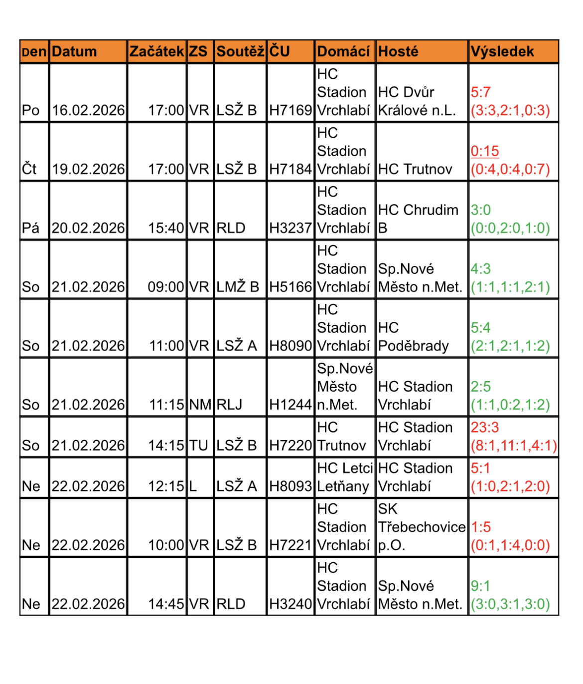 Přinášíme Vám výsledkový servis mládeže za 8. týden (16. - 22.02.2026).