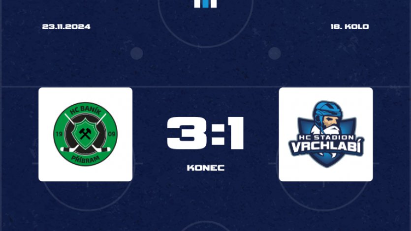 Ve 42. minutě byl znovu vyloučen Fiala, tentokrát se domácí podařilo využít přesilovou hru. V čase 41:45 zvýšil na 3:1 Josef SAŇA, který překvapil brankáře Vrchlabí. Ve 44. minutě si šel na trestnou lavici sednout domácí Jelínek, následoval ho jeho spoluhráč Labuzík. Bohužel dvojnásobnou výhodu HC Stadion nevyužil. Hasman se ve 47. minutě dostal do samostatného úniku, ale Krále nepřekonal. V 51. minutě byl vyloučen Bednařík, Vrchlabí ale nezačalo přesilovku dobře. Baník se dobře bránil, nakonec gól nepadl. Tatar se v 56. minutě dostal až před Jirouška, ale zastavil ho domácí hráč. O minutu později se puk dostal až ke Králově brance, naštěstí pro Vrchlabí ale do branky nedoklouzal. Vrchlabí mělo problém se dostat ze středního pásma a kombinovat u příbramské branky. Od modré čáry puk ještě před sirénou nahazoval Perička, ale pokus mířil mimo.