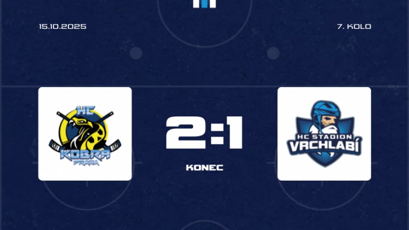 HC Stadion VrchlabíDomácí hokejisté se jako první dostali k puku. Ondrík byl ale ten, kdo si připsal první zákrok. Ve 3. minutě si Červinka poradil se střelou. Kříženecký střílel na brankáře, ale Červinka byl připravený. Fiala nahazoval od modré čáry, ale znovu Červinka zasáhnul, tentokrát betonem. V 10. minutě se Kobra dostala do útočného pásma, kde kombinovala, ale do protiútoku se dostal HC Stadion. Moník se dostal do šance, ale trefil pouze Ondríka. Ani další pokusy nebyly úspěšné. V 16. minutě se dostalo Vrchlabí do přečíslení 2 na 1, ale Ondrík dokázal střelu vyrazit. Poté přišlo první vyloučení zápasu, a to na straně domácích. Krkonošský celek se několikrát dostal do šance, ale nakonec branka nepadla. Také na straně HC Stadionu přišlo vyloučení, a to na konci třetiny. Šteiner poslal přihrávku na Bříška, ale ten trefil pouze obránce Vrchlabí. V první třetině tak diváci gól neviděli.