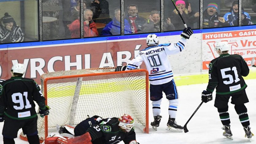 BilinaÚvodní buly zápasu vyhrál domácí celek. Vrchlabští útočníci okamžitě zamířili do obranné třetiny bílinského týmu. Padala jedna střela za druhou, ale poprvé se domácí trefili v polovině čtvrté minuty. Rychlý protiútok domácích otevřel skóre zápasu, když Petr Sýkora našel mezi kruhy najetého Tomáše BLÁHU, který s ledovým klidem prostřelil bílinského brankáře Štěpánka. Po několika dalších střelách, které nezamířily za záda Štěpánka, přišla další šance domácích, kdy bílinský gólman udělal obrovskou chybu. Při rozehrávce mu puk přeskočil hokejku a skočil do jeho sítě. Branka byla připsána Davidu CHALUPOVI. Domácí hráči takřka hosty nepustili k puku, jedna akce střídala druhou. Na začátku desáté minuty přišla další jistá šance domácích, kdy se puk vyražený Štěpánkem dostal na hokejku Davidu CHALUPOVI a ten s jistotou zakončil za záda gólmana. Jedna z mála akcí Bíliny nebyla zakončena ani střelou. V polovině dvanácté minuty přišlo první vyloučení zápasu, za sekání zamířil na dvě minuty na trestnou lavici bílinský Urban. Domácí tak dostali první šanci v přesilové hře, která se zvýšila na začátku čtrnácté minuty, kdy za Urbanem zamířil Procházka za nesportovní chování. Bílina tak lehce přes půl minuty hrála v oslabení tři na pět. Domácím se však v přesilové hře nepodařilo skórovat, největší šanci měl Dvořák, když sám ujel na Štěpánka, ale střela mezi betony neprošla. Další branka přišla po polovině devatenácté minuty, kdy Filip Moník našel zpoza branky svého bratra Jakuba MONÍKA a ten zakončil do horního růžku branky. O jedenáct vteřin později padla pátá branka domácích a to rukou Lukáše KASTNERA. Následovalo střídání brankářů na hostující straně, kdy z hřiště odešel Štěpánek a přišel Kuchař.