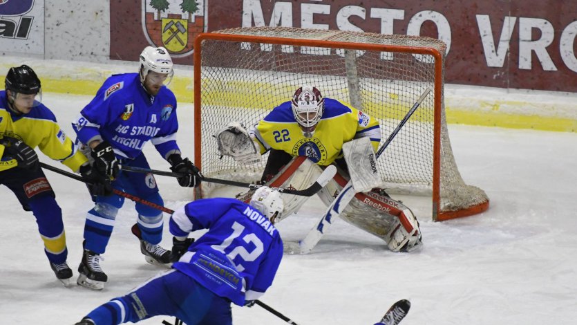 KobraV hostující brance byl tentokrát od začátku Langer. Ten musel hájit branku po střele Svobody. Ve 2. minutě si najížděl Filip, ale trefil pouze tyč. Také hosté se dostali do šance, ale Jelínek střelu vyrazil. Ve 4. minutě přišlo vyloučení na straně hostů. V oslabení zaútočila dvojice Jedlička – Jakeš, druhý jmenovaný však netrefil puk a příležitost nevyužil. V 5.minutě se Vrchlabí dostalo do útočného pásma, ale střela Matějčka pouze trefila Langera. Poté přišly šance na obou stranách, ale obě bez gólového konce. Až v čase 7:35 se za Kobru Praha trefil Jiří KYSELA po přihrávce Vlacha. V 10. minutě Langer zasáhl tělem, ale Jandejskovi se nepovedla dorážka. V čase 10:50 ale už bylo vyrovnáno zásluhou Tomáše BLÁHY, který společně s Maďarem a Filipem připravili parádní akci. Urbanovi střela nesedla, střílel pouze do Langera. Ve 14. minutě přišlo vyloučení také na domácí straně. HC Stadion ale oslabení zvládl, ačkoliv se hosté usadili před Jelínkem. Domácí už byli v plném počtu, když se do vedení v čase 15:35 opět dostala Kobra zásluhou Daniela VLACHA, který se dostal do úniku a s Jelínkem si poradil. 18- minuta přinesla další vyloučení, tentokrát na straně Kobry. Toho mohl využít Filip, který trefil pouze tyč a také po Urbanově střele diváci gól neviděli. DO konce třetiny už si Kobra jen hlídala výsledek.