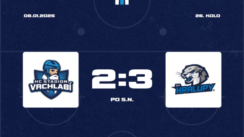 V prodloužení ale ani jeden tým nic zásadního nepředvedl, Hampl se nedostal k zakončení a v 63. minutě si Ebenstreit puk raději pozdržel. Zápas tak musely rozhodnout samostatné nájezdy. V první sérii se trefil pouze hostující Broš, Bláha za Vrchlabí minul. Ve druhé byl také úspěšný pouze hráč Kralup, ZÍDEK. Turek trefil pouze vyrážečku brankáře. Ve třetí snížil na 1:2 vrchlabský Chrtek, ale Sklenář se trefil také. Čtvrtá série začala neúspěchem Chalupy, takže kralupský hráč další nájezd už nejel. Kralupy si tak z Vrchlabí odvážejí 2 body.