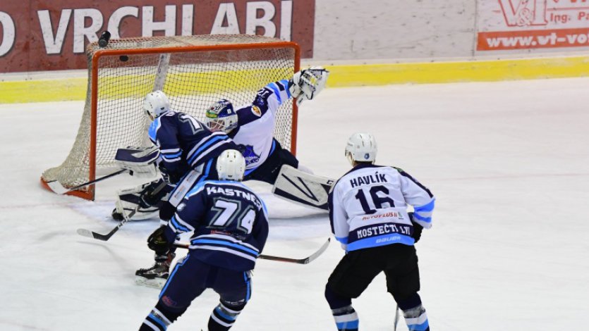 Aktivněji do utkání vstoupili hosté, hned ve 3. minutě mohl skóre otevřít Daniel, Vacek zasáhl betonem. Další zákrok si připsal o chvíli později proti střele Šimečka. Poté byl ale vyloučen mostecký Písařík a toho domácí ihned využili. V čase 4:37 se prosadil David CHALUPA, kterého našel Urban. Přesná přihrávka vyústila v první branku HC Stadionu. V 8. minutě střílel Chrtek, ale Klika vyrazil nad sebe. Ve 12. minutě se do střely opřel Kastner, ale ani on ani Chrtek nebyli úspěšní. Vypadalo to ale na jasnou převahu Vrchlabí. Klika ve 14. minutě zasahoval proti ráně Krska a Chalupy. Brankář měl plné lapačky práce, na druhé straně se Vacek docela nudil. V 18. minutě se ale dostal do útočného pásma Šimeček, ale jeho zakončení šlo bohužel pro Most vedle. Ještě na konci třetiny střílel Matějček, ale Klika střelu zastavil betony.