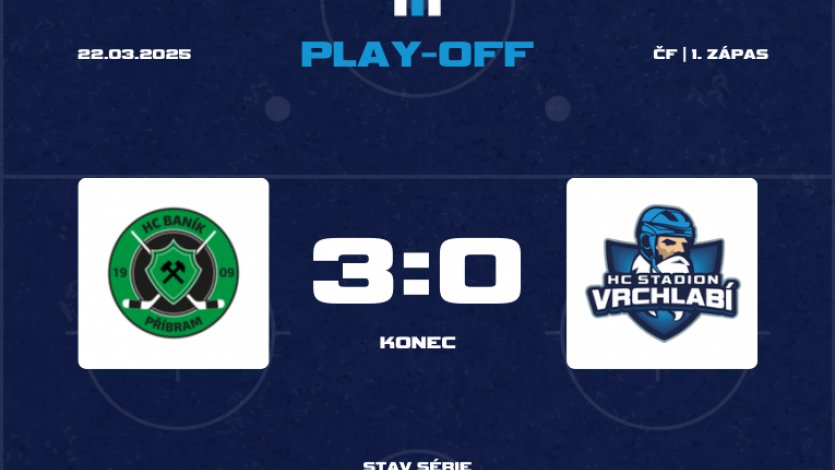 Příbramští si s oslabením poradili. Hostům se nedařilo dostat se do útočného pásma, Moník znovu nahazoval puk ve 46. minutě, ale Jiroušek bez problémů chytá. I Kremláčkův pokus na druhé straně neskončil gólem. Duchan mohl přidat další gól ve 49. minutě, ale Král zaklapl betony včas. Krsek se dostal do šance, ale minul Jirouškovu branku. Další šanci měl znovu Duchan, ale zasáhli obránci HC Stadionu. I třetí třetinu byli domácí ve velké přesile, prakticky vrchlabské hráče nepustili k puku. Kafka držel útočné pásmo v 56. minutě, ale puk získal Hebek. Chalupa střílel od pravého mantinelu, ale bohužel se pokus minul účinkem. HC Stadion tak proti soupeři z Příbrami nebodoval a na domácím ledě se pokusí získat první cenné vítězství v této sérii.