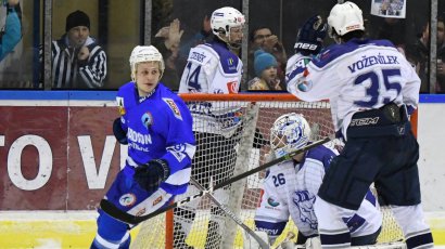 Hned na začátku zápase byl vyloučen kolínský Kadlec. Domácí se ale k větším šancím nedostali, Jandejsek se dokonce snažil projet až ke kolínské bráně. Ve 4. minutě byl vyloučen také hostující hráč. Hosté se sice usadili v pásmu, ale Koutský držel svůj tým. V čase 6:31 se jako první v tomto utkání trefuje za Kozly Josef Malý, kterému skvěle přihrál Semirád, a tak neměl problém puk zamést do vrchlabské branky. 10. minuta přinesla dvě akce – nejprve kombinovali před Koutským hosté, následně se blýsknul Jelínek, který zabránil gólu z hokejky Krajňáka. Poté byl vyloučen kolínský hráč. Ani tentokrát se ale HC Stadion neprosadil. Také domácí nevyužili výhodu jednoho hráče navíc. Jelínek se ale musel v brance otáčet, protože několik střel na něj Kozli poslali. V 18. minutě mohlo být vyrovnáno, ale Koutský proti střele Nováka zasáhl holí. Poslední minuta přinesla vyloučení na hostující straně, ale do konce první třetiny gól nepadl.