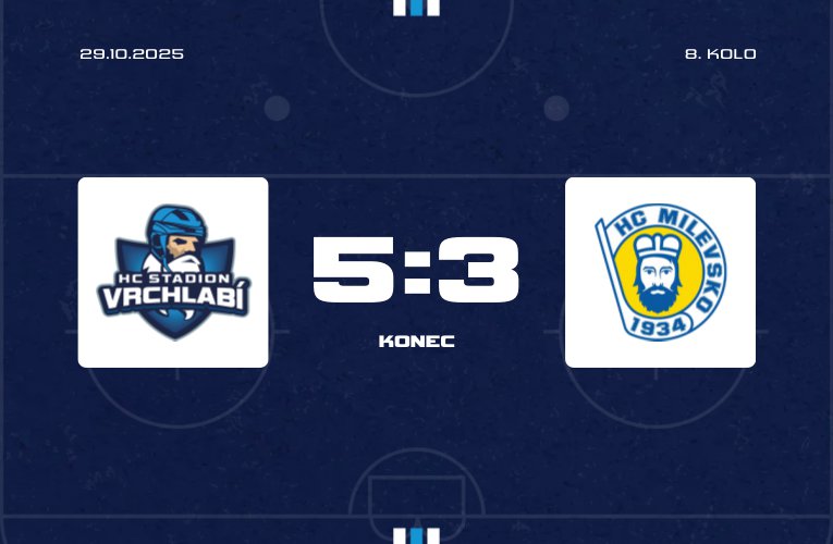 V domácím zápase HC Stadion Vrchlabí bere všechny tři body nad Milevskem, které je nováčkem ligy. Již po první třetině vedli domácí 2:1, ve druhé části přidali tři branky. Milevsko na několik gólů reagovalo ve třetí třetině pouze jednou, a tak domácí berou další body...