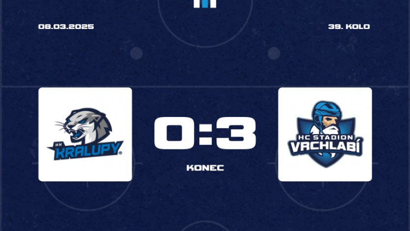 V posledním zápase základní části zvítězil HC Stadion Vrchlabí na ledě Kralup nad Vltavou. V každé třetině dokázal vstřelit jednu branku a to mu zajistilo výhru za tři body. V tabulce se sice nic nemění, ale HC Stadion potvrdil, že má třetí místo zasloužené.